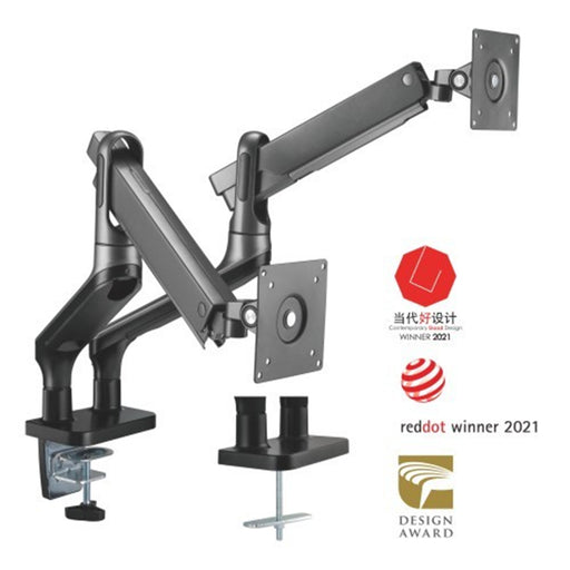 Brateck Lumi LDT46-C024 Elegant Dual 13 -27 Counter Balance Monitor Desk Mount. Max Load 6.5Kgs. Supports VESA 75x75 & 100x100. Gas Spring with Matt Plastic Surface. Extend Tilt & Swivel. Black Colour